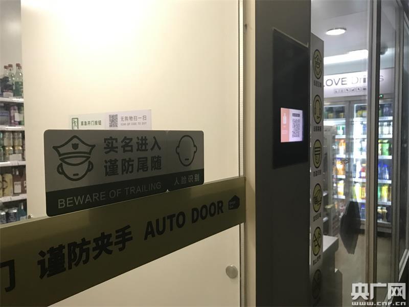 無人超市門口提示標(biāo)識(shí):“實(shí)名進(jìn)入 謹(jǐn)防尾隨”