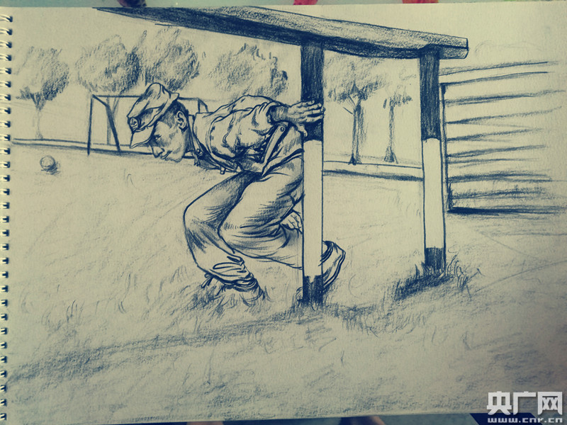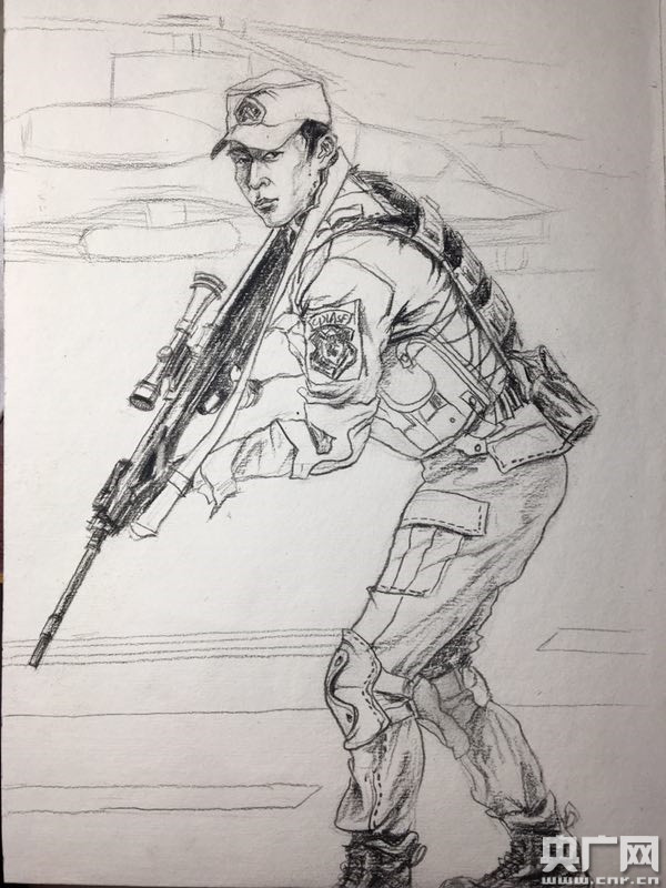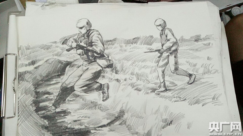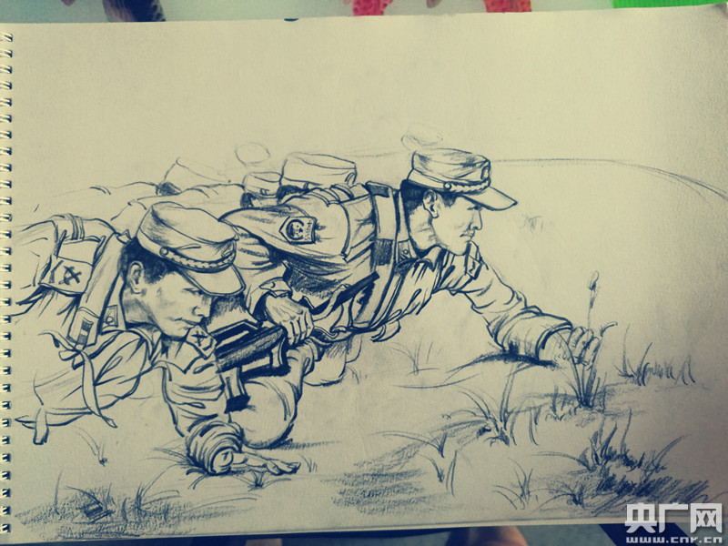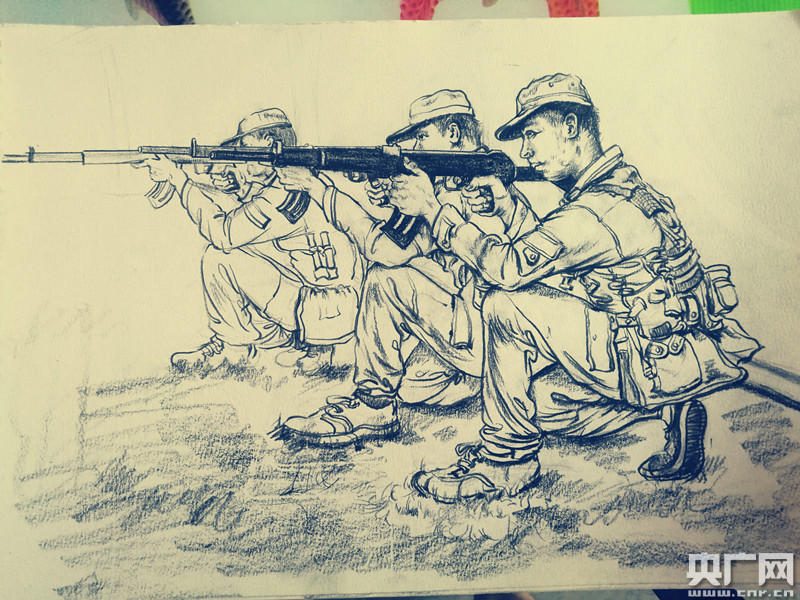 央廣網(wǎng)上海7月31日消息(記者吳善陽 唐奇云)在建軍90周年來臨之際,上海第二工業(yè)大學(xué)應(yīng)用藝術(shù)設(shè)計學(xué)院的一支暑期社會實(shí)踐團(tuán)隊(duì)在走訪軍營后,手繪了近百幅速寫作品向軍人表達(dá)敬意。一個個負(fù)重越野的背影,一個個鐵絲網(wǎng)下匍匐前進(jìn)的畫面,被“95后”大學(xué)生以速寫的形式記錄下來。七月上旬,上海第二工業(yè)大學(xué)應(yīng)用藝術(shù)設(shè)計學(xué)院暑期社會實(shí)踐團(tuán)隊(duì)一行20余人前往上海某軍區(qū),通過走訪軍營實(shí)地,以公益速寫、攝影的形式展現(xiàn)軍人精神。過程中,同學(xué)們親眼目睹了軍人們的訓(xùn)練演示,和他們進(jìn)行面對面的交流,參觀了宿舍等場所,對軍人這一神圣的職業(yè)有了更深的認(rèn)識。 -