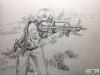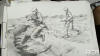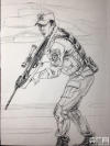 由于軍隊(duì)的特殊性,上海第二工業(yè)大學(xué)的同學(xué)們實(shí)地走訪軍營的時間是短暫的。有的訓(xùn)練場景先用相機(jī)拍攝,再進(jìn)行后期的速寫創(chuàng)作。更多的作品,是同學(xué)們查閱相關(guān)資料和圖集后完成的。 -