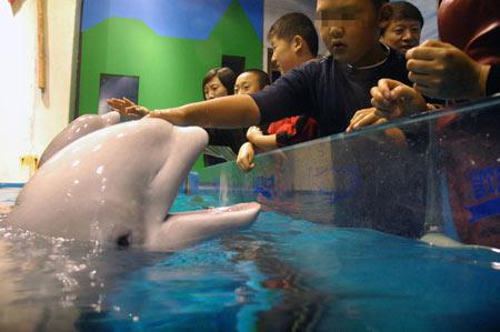 近年來,白鯨的另一個功能在爭議中被越來越多人所知。據(jù)說,它們高昂的叫聲能刺激自閉癥患兒的大腦,從而喚醒他們。幾年前,長風海洋世界也做過這樣的嘗試,馴養(yǎng)員意外地發(fā)現(xiàn),一位原先只能發(fā)出“呀、呀”單音節(jié)的小男孩,在與白鯨近距離親密接觸5、6次后,能開口叫爸爸、媽媽了。是偶然的巧合,還是白鯨確有輔助治療的神奇本領?長風海洋世界開始向聞訊趕來的十多位自閉癥患兒免費提供與白鯨零距離接觸的機會。