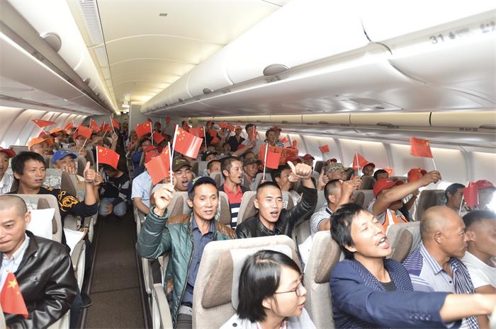 東航加勒比救援包機(jī)創(chuàng)四項(xiàng)新紀(jì)錄“祖國萬歲!熱烈歡迎同胞回家!”10月1日夜間的上海虹橋機(jī)場燈火通明。在這舉國歡迎的日子里,伴隨著飛機(jī)的轟鳴聲,21:04分和21:39分,兩架東航A330客機(jī)分別降落,381名在加勒比颶風(fēng)中受災(zāi)的同胞安全順利地回到祖國的懷抱。中國商務(wù)部、民航華東管理局、東航、上海市商委以及相關(guān)企業(yè)的領(lǐng)導(dǎo)在機(jī)坪上迎接歸國同胞和東航全體機(jī)組成員凱旋。至此,東航歷時4天圓滿完成了多米尼克中方人員緊急轉(zhuǎn)移回國任務(wù)。 2017-10-08 11:45:00