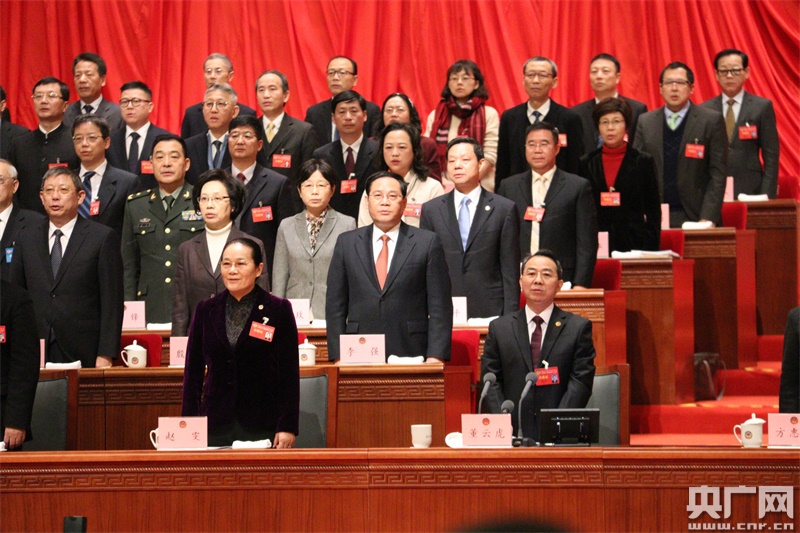 市政協(xié)十三屆一次會(huì)議主席團(tuán)常務(wù)主席董云虎、方惠萍、趙雯、周漢民、王志雄、張恩迪、李逸平、徐逸波、金興明、黃震及主席團(tuán)成員在主席臺(tái)就座。
