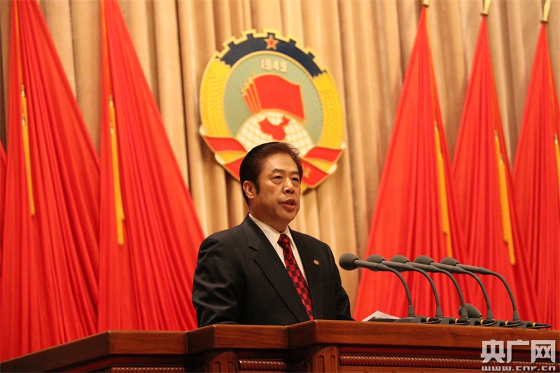 吳志明代表政協(xié)上海市第十二屆委員會(huì)常務(wù)委員會(huì),向大會(huì)報(bào)告工作。