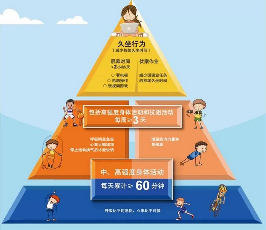 除身體活動的每日推薦量之外,本次指南還專門強調(diào)了久坐行為對健康的危害。為此,指南特別建議在保證每天60分鐘中高強度運動時間以外,兒童青少年每日屏幕時間應(yīng)限制在2小時內(nèi),并減少持續(xù)久坐行為,在課間休息時應(yīng)進行適當?shù)幕顒印?/div>