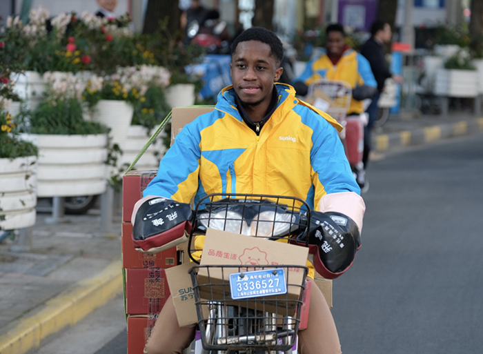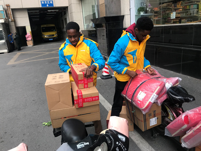 央廣網(wǎng)上海2月11日消息(記者傅聞捷)“儂好,新年好!您的快遞!贝汗(jié)期間,申城悄然出現(xiàn)了一批快 “老外”遞小哥。騎著快遞電瓶車,整潔的服裝,背后印有“蘇寧快遞”的字樣標(biāo)明了他的身份。