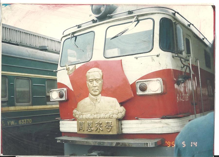 第三代周恩來(lái)號(hào)機(jī)車(chē)東風(fēng)11-1898 圖片來(lái)源:上海機(jī)務(wù)段 40年來(lái),“周恩來(lái)號(hào)”機(jī)車(chē)經(jīng)歷了四次換型。1978年命名時(shí),使用的是東風(fēng)3型0058號(hào)機(jī)車(chē);1984年換型為東風(fēng)4型2106號(hào)機(jī)車(chē);1997年更換為東風(fēng)11型機(jī)車(chē),并以周總理誕生年份1898為機(jī)車(chē)編號(hào)。隨著電力牽引的發(fā)展,2015年,第四代“周恩來(lái)號(hào)”機(jī)車(chē)——“和諧型”HXD1D -1898號(hào)正式上線運(yùn)行。至今,機(jī)車(chē)擔(dān)當(dāng)著上海-南京K1555/K1556次旅客列車(chē)牽引任務(wù),不久的將來(lái),機(jī)車(chē)牽引區(qū)段將延伸至周恩來(lái)的故鄉(xiāng)——淮安。 -