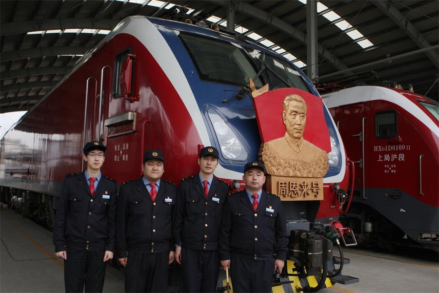 現(xiàn)任第十任司機(jī)長(zhǎng)計(jì)磊及機(jī)車(chē)組成員 圖片來(lái)源:上海機(jī)務(wù)段 上海機(jī)務(wù)段黨委書(shū)記徐敢峰表示,“周恩來(lái)”號(hào)目前承擔(dān)了上海機(jī)務(wù)段客運(yùn)交路當(dāng)中安全壓力最大、交路最為復(fù)雜、操縱最為困難的一段,為上海機(jī)務(wù)段1500名乘務(wù)員當(dāng)好榜樣,做好示范。 -