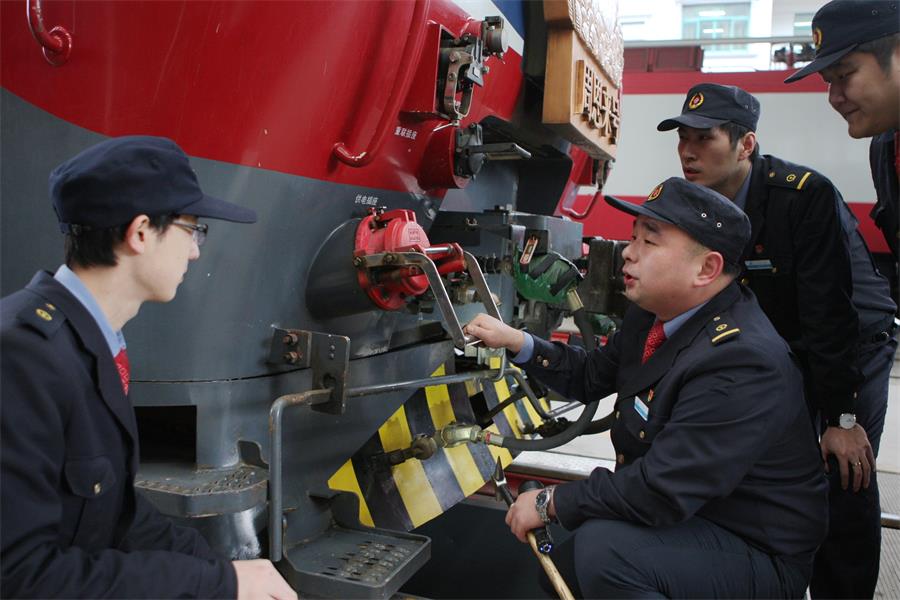 機(jī)車(chē)組成員在檢查設(shè)備 圖片來(lái)源:上海機(jī)務(wù)段 “新的時(shí)代、新的引領(lǐng),我們‘周恩來(lái)號(hào)’機(jī)車(chē)組成員一定牢記使命,繼續(xù)傳承偉人精神,勇往直前,當(dāng)好排頭兵,為中國(guó)鐵路運(yùn)輸事業(yè)的發(fā)展做出新的更大貢獻(xiàn)!边@是班組成員發(fā)出的共同心聲。
