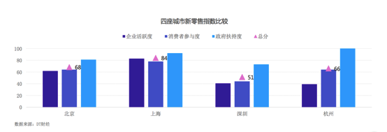 報告從企業(yè)活躍度、消費者參與度、政府扶持度等多個維度進行綜合分析,最終得出一系列新零售指數(shù),用于評估一座城市的新零售活力。
