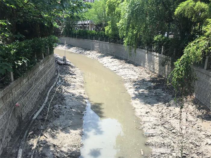 督查期間,松江區(qū)張渡浜河道接到投訴較多、問題較為集中。5月10日接報當天,區(qū)水務(wù)局、區(qū)河長辦隨即趕赴現(xiàn)場,會同九里亭街道共同分析原因,研究整治方案,連夜落實應(yīng)急處置措施。張渡浜(五洲云景小區(qū)段)水質(zhì)不佳的主要原因是:沿街商鋪雨污分流改造正在推進,遇超設(shè)防標準強降雨后,大量初期雨水和混流污水通過沿河已建成的兩座自溢式截污井溢流入河,導(dǎo)致河道水質(zhì)逐漸惡化。