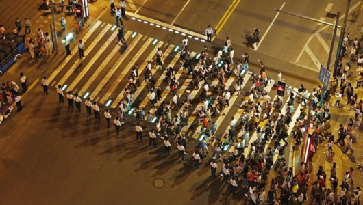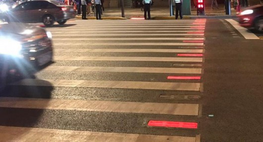 除了聞名遐邇的“開(kāi)關(guān)式”過(guò)馬路模式于下午15時(shí)許開(kāi)始啟用,記者還看到了位于南京東路、中山東一路路口處一條會(huì)發(fā)光的人行道——今年國(guó)慶剛剛啟用的新型行人過(guò)街提示系統(tǒng)。據(jù)黃浦警方介紹,這套提示系統(tǒng)由警示立柱和行人路面發(fā)光設(shè)施兩部分組成,行人警示立柱包括行人視頻監(jiān)測(cè)器、行人信號(hào)燈、行人過(guò)街提示屏、車(chē)輛通行燈光帶等設(shè)備;路面發(fā)光設(shè)施包括人行橫道燈光帶、人行道發(fā)光地磚、停車(chē)線(xiàn)發(fā)光帶等設(shè)備!叭诵械腊l(fā)光地磚的顏色跟行人信號(hào)燈顏色同步,能更好地提示行人,尤其是一些低頭族,不要闖紅燈!秉S浦警方介紹,發(fā)光地磚由特殊材料壓制而成,表面粗糙度與瀝青路面相當(dāng),硬度與鋼板相當(dāng)。當(dāng)系統(tǒng)監(jiān)測(cè)到有行人闖紅燈時(shí),行人警示柱內(nèi)的定向擴(kuò)音器會(huì)自動(dòng)發(fā)出“您已紅燈越線(xiàn),請(qǐng)退回等待”的提示音,同時(shí),配合抓拍行人違法的電子警察,顯示屏?xí)䦟?shí)時(shí)闖紅燈行人的圖像!