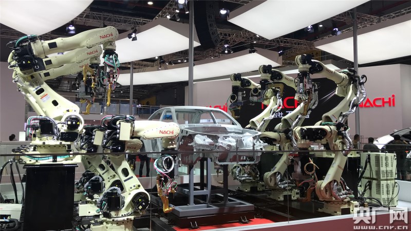 那智不二越循環(huán)演示高密度汽車(chē)電焊生產(chǎn)線。(央廣網(wǎng)記者 唐奇云 攝)