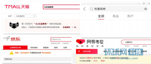 11月22日一早,經環(huán)球網科技查詢,包括天貓、京東、網易考拉以及小紅書等電商平臺均已下架D&G相關商品與內容。