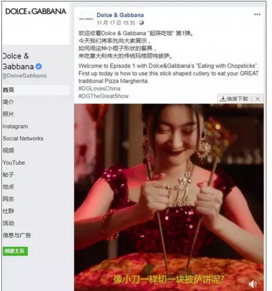 據(jù)報道,此事源于一段D&G所發(fā)布的宣傳片,D&G曾于18日在官方微博及國外社交媒體官方賬號上發(fā)布一則預告短片。