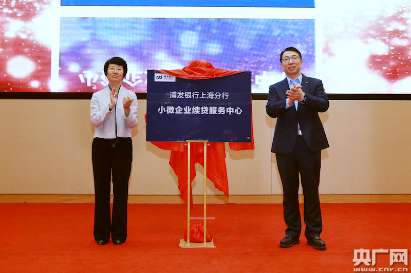 浦發(fā)銀行黨委書記鄭楊與上海金融工作局局長解冬共同為浦發(fā)銀行小微企業(yè)續(xù)貸服務中心成立揭牌(央廣網(wǎng)發(fā) 浦發(fā)銀行提供)