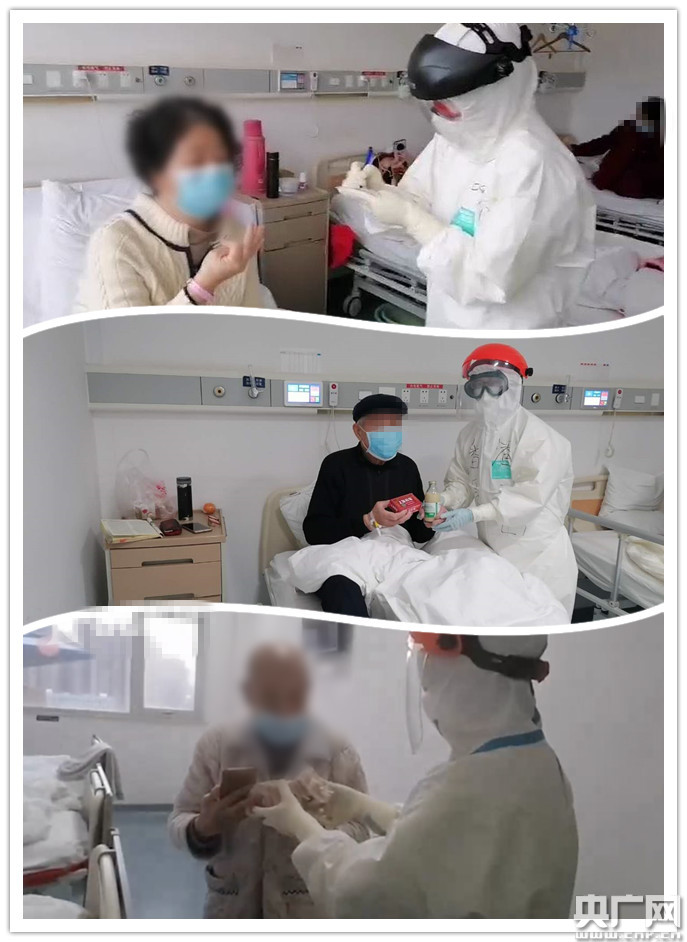 剛開始投入醫(yī)療工作,患者的精神狀態(tài)引起包括支委李鋒在內(nèi)的全體醫(yī)護(hù)人員的擔(dān)憂。“這是一批病情嚴(yán)重但是沒有達(dá)到進(jìn)入ICU病房標(biāo)準(zhǔn)的患者,是一批生活無法自理卻沒有任何親屬照顧的患者!笨粗蠖鄶(shù)患者眼中的無助和絕望,他和隊(duì)友們感到一陣陣痛徹心扉。隊(duì)員們一致認(rèn)為:患者這樣的精神狀態(tài),勢(shì)必影響到他們對(duì)醫(yī)療的配合,甚至可能引起心理上的崩潰!必須盡快地糾正,刻不容緩!2月12日下午,潘文彥準(zhǔn)備了一箱橘子和面包,組織醫(yī)護(hù)人員送入隔離區(qū),分發(fā)給每位患者。雖然每位患者僅分到2個(gè)橘子,卻讓大家喜出望外:有人說是不是過節(jié)才發(fā)的,太高興了;有人說,看來大家沒有忘記我們;還有人說,太好吃了,很久沒有吃到水果,真甜。∵有位患者,由于直系親屬相繼病故,生活物品也沒人補(bǔ)給。隊(duì)員們得知這一情況后,及時(shí)安排人員購(gòu)買了相應(yīng)的生活物品送給這位患者!翱吹矫课换颊吣樕现匦卵笠缰眠`了的笑容,我們也禁不住熱淚盈眶!崩钿h說,“因?yàn)槲覀冎,這些患者又有了活下去的勇氣和動(dòng)力!”