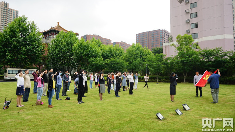 本次紅色行走的起點(diǎn)位于國福路51號的一棟三層小樓,這里曾是《共產(chǎn)黨宣言》中文全譯本首譯者陳望道老校長的寓所,后辟建為《共產(chǎn)黨宣言》展示館。在校黨委副書記、副校長周亞明的帶領(lǐng)下,來自物理學(xué)系黨委、生命學(xué)院生物化學(xué)與分子生物學(xué)系教工黨支部、信息學(xué)院電子工程系教師黨支部、管理學(xué)院信息管理與信息系統(tǒng)系黨支部的60余名黨員代表在《共產(chǎn)黨宣言》展示館前重溫入黨誓詞。