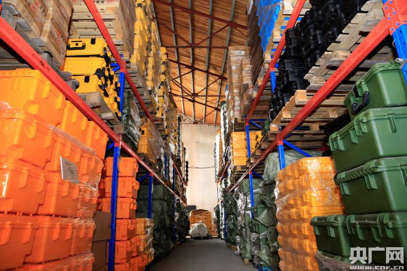 企業(yè)倉庫壘滿各類防護箱(央廣網(wǎng)發(fā) 楊亮 攝)