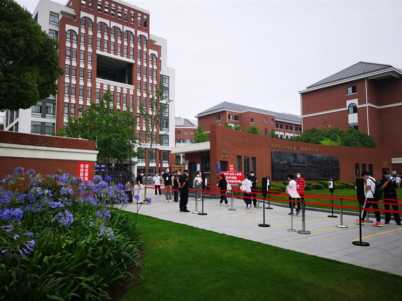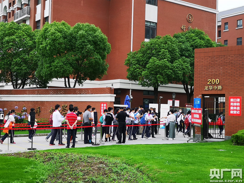 記者在位于上海市徐匯區(qū)的南洋中學(xué)考點(diǎn)看到,學(xué)校大門所在的龍華中路也是進(jìn)行了交通管制,馬路邊作為家長(zhǎng)的臨時(shí)停車場(chǎng)。根據(jù)上海市教育考試院的建議,希望考生能提前45分鐘就到達(dá)現(xiàn)場(chǎng)。剛才八點(diǎn)鐘左右,考生已經(jīng)開(kāi)始陸續(xù)進(jìn)場(chǎng),F(xiàn)場(chǎng)的考生、老師和家長(zhǎng)們也基本上都戴著口罩,校門口還準(zhǔn)備了免洗洗手液,并要求考生保持一米以上間距排隊(duì)測(cè)溫入場(chǎng)。