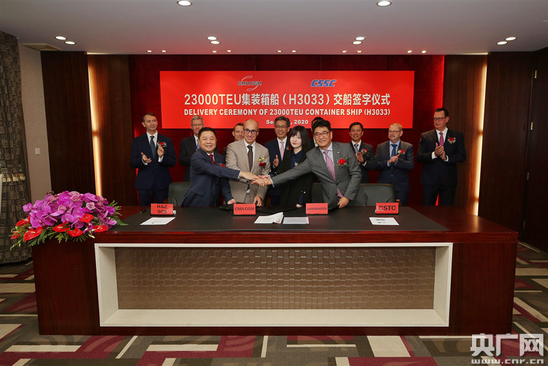 央廣網(wǎng)上海9月22日消息(記者郭淼 傅聞捷)今天下午,由中國船舶集團有限公司旗下滬東中華(造船)有限公司和中國船舶工業(yè)貿(mào)易有限公司作為聯(lián)合賣方為世界著名航運公司——法國達飛集團建造的世界首艘23000TEU雙燃料動力集裝箱船“達飛雅克·薩德”號,在上海長興島造船基地命名交付。