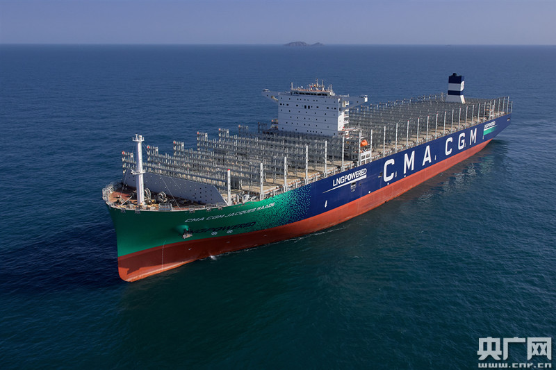 世界首艘23000TEU雙燃料動力集裝箱船“達飛雅克?薩德”號(央廣網(wǎng)發(fā) 中船集團提供)