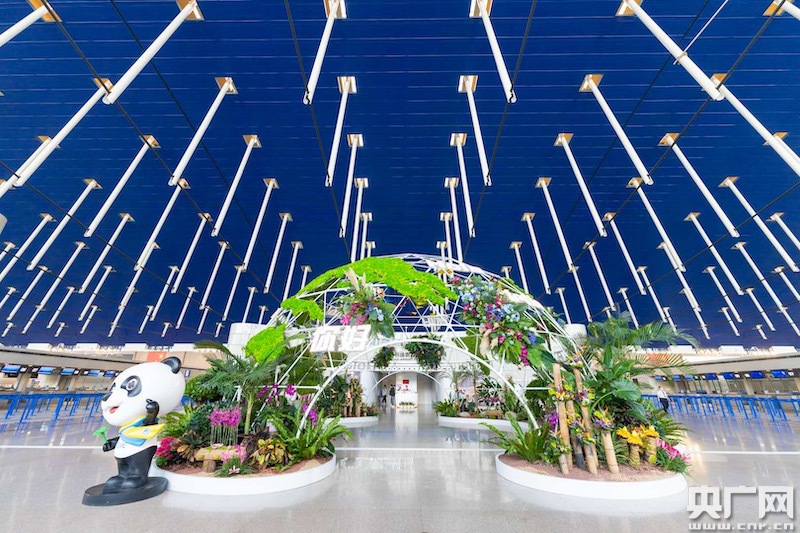 浦東機(jī)場(chǎng)營(yíng)造了“綠水青山”別樣江南特色的氛圍展示區(qū)(央廣網(wǎng)發(fā) 上海機(jī)場(chǎng)供圖)