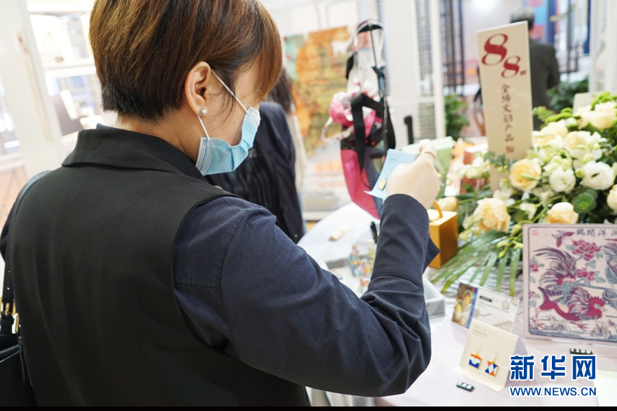 參觀者在一款文創(chuàng)產(chǎn)品前駐足欣賞。新華網(wǎng)馮麗 攝