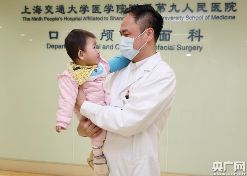 患兒術(shù)后與上海第九人民醫(yī)院副院長王旭東(央廣網(wǎng)發(fā) 九院供圖)