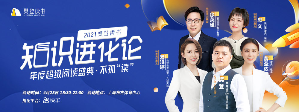 央廣網(wǎng)上海4月12日消息(記者韓曉余)4月23日世界讀書日,“知識進(jìn)化論·不孤‘讀’”線下閱讀盛典將在上海舉辦。這是繼2019年的“知識進(jìn)化論”主題演講和2020年的“2020當(dāng)我們一起讀書-知識TALK秀直播周”之后,樊登讀書在世界讀書日推出的第三次年度閱讀活動。