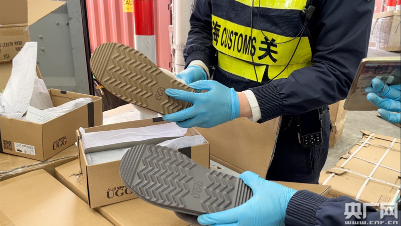 該批貨物擬出口澳大利亞,經(jīng)現(xiàn)場查驗(yàn)關(guān)員仔細(xì)清點(diǎn),多為 “UGG”女士鞋靴,包括拖鞋、短靴、低幫鞋等,涉案貨值約人民幣50余萬元。經(jīng)相關(guān)權(quán)利人確認(rèn)該批貨物為侵權(quán)產(chǎn)品。目前,該案正在進(jìn)一步辦理之中。