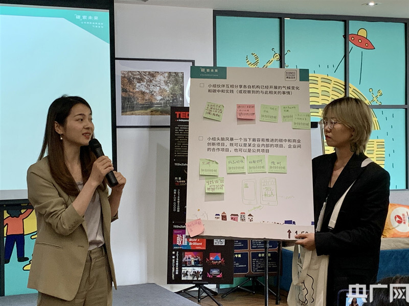 工作坊討論環(huán)節(jié),參與者分組頭腦風暴一個具有落地性的碳中和商業(yè)創(chuàng)新項目,現(xiàn)場討論氣氛熱烈。有的小組提出了長江入?谀迪狆B(yǎng)殖項目,通過親子教育和社區(qū)活動提升公眾參與,出售碳信用等方式,創(chuàng)造社會、環(huán)境和經(jīng)濟三重價值,撬動人們關(guān)注海洋固碳能力。有的小組提出建設(shè)好物推薦平臺,人們可以通過該平臺找到自己需要的氣候友好的產(chǎn)品和服務(wù),用消費支持可持續(xù)發(fā)展。還有的小組以其中一個參與者所在的企業(yè)需求為基礎(chǔ),共創(chuàng)了汽車后市場玻璃水小瓶換大瓶的包裝減量改進方案,F(xiàn)場參與者還熱烈地討論了軟塑料包裝與硬塑料包裝的選擇問題。