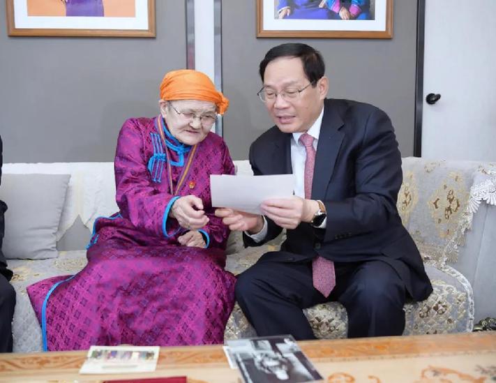 對(duì)內(nèi)蒙古人民的深情厚誼表示誠(chéng)摯謝意和崇高敬意,祝愿都貴瑪老人健康長(zhǎng)壽、生活幸福