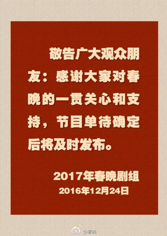 央視春晚疑辟謠網(wǎng)傳節(jié)目單:確定后發(fā)布