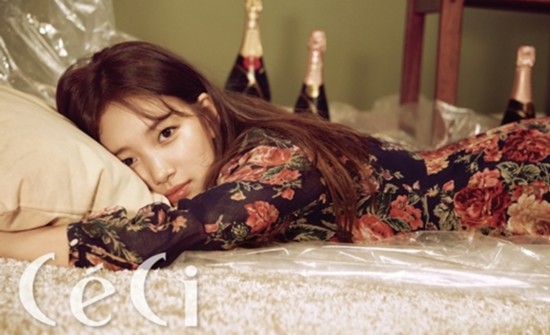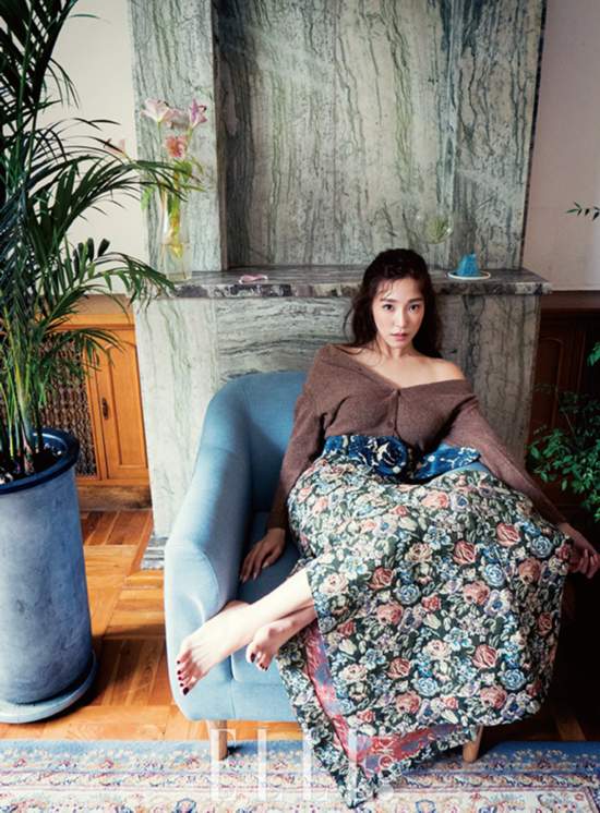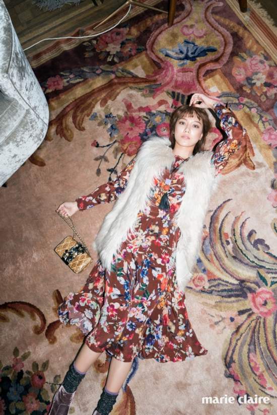 #秀英 #少女時代 #韓國歌手 #《marie claire》 #花朵花紋長裙 #花朵圖案與毛毛夾克 #絲絨鞋 #Essentiel #波希米亞風格
