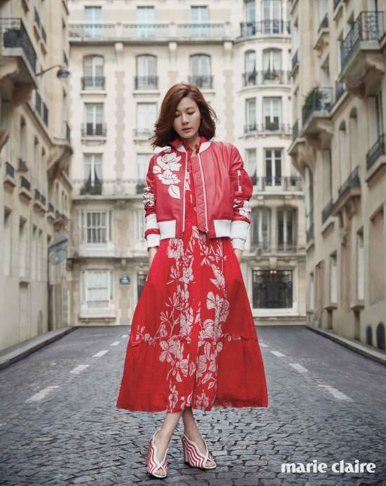 #金荷娜 #韓國演員 #《marie claire》 #花朵圖案紅色裝 #同一色系 #花朵長裙 #紅色夾克 #芬迪 #紅色與白色花朵 #居家裝