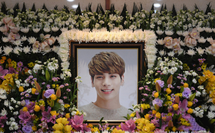 12月20日,張藝興抵達韓國吊唁已逝的SHINee成員金鐘鉉,張藝興低頭不語快速走進靈堂,面色凝重,可以看出心情十分悲痛。