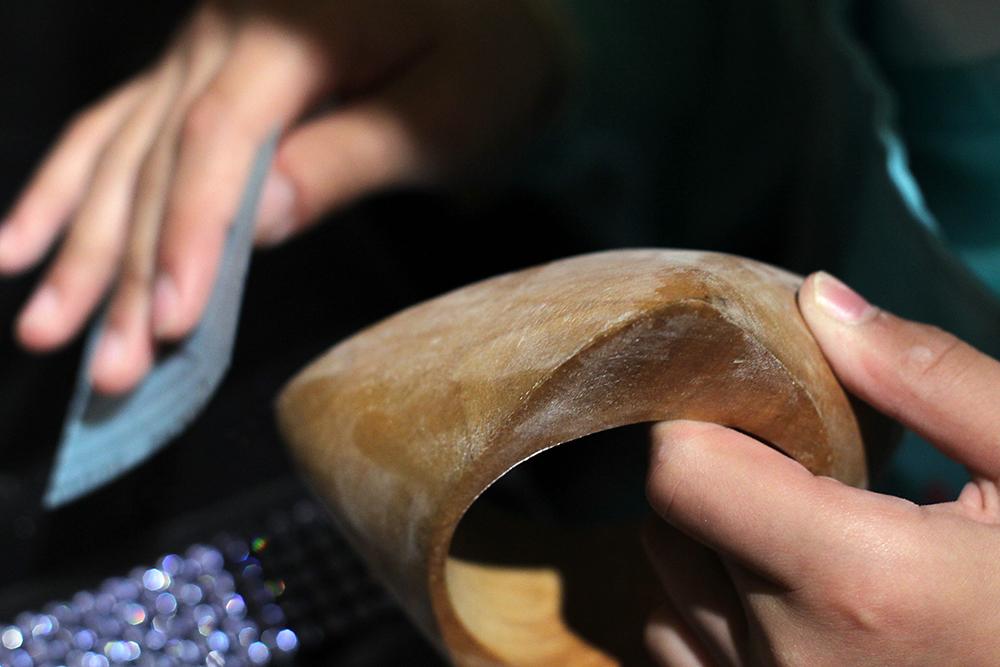 “想一想,手鐲除了戴,還能做什么?”“可以做相框!薄翱梢苑疟印!5月3日,徐匯藝術(shù)館里笑聲一片,來自光啟小學(xué)等學(xué)校的五年級(jí)孩子在漆器藝術(shù)家項(xiàng)軍的帶領(lǐng)下制作漆器手鐲,孩子們天馬行空的想象力令在場(chǎng)老師驚訝不已。徐匯藝術(shù)館聯(lián)手徐匯區(qū)教育學(xué)院課程教學(xué)研修中心,同時(shí)邀請(qǐng)木川澗漆藝空間共同合作,結(jié)合“大漆司器——源于生活的漆器藝術(shù)展”推出漆藝主題的“美術(shù)館里上美術(shù)課”活動(dòng),學(xué)校、美術(shù)館、藝術(shù)家三方的協(xié)作和碰撞,讓學(xué)生在美術(shù)館展覽氛圍中認(rèn)識(shí)漆器在中國的歷史淵源和技藝流變,跟著手工藝人和大師體驗(yàn)漆器制作、學(xué)習(xí)匠人精神、感受傳統(tǒng)工藝的無窮魅力。