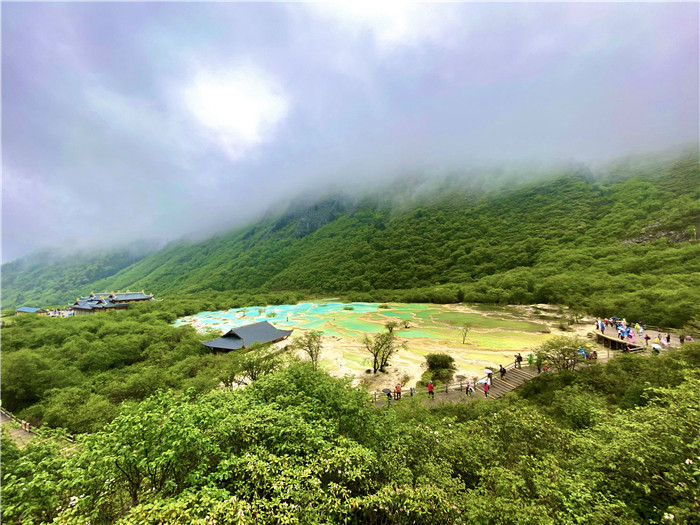 黃龍國家級風(fēng)景名勝區(qū)以“彩池 灘流 瀑布 雪山 古寺”五絕著稱,集世界自然遺產(chǎn)、世界人與生物圈保護(hù)區(qū)、國家地質(zhì)公園和國家5A級景區(qū)等多項桂冠于一身。其獨(dú)特的高寒喀斯特地貌,使得黃龍景區(qū)成為鈣華彩池的聚集地。3000多個鈣華彩池鋪展在僅3.5公里的黃龍溝,層層疊疊,姿態(tài)各異,美輪美奐,蜚聲中外,因此有著“人間瑤池·圣地黃龍”的美譽(yù)。