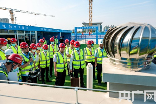 在項(xiàng)目觀摩環(huán)節(jié),項(xiàng)目管理人員介紹了勞務(wù)人員入場管理流程(安全教育、防疫管控、實(shí)名制管理),項(xiàng)目安全標(biāo)準(zhǔn)化建設(shè)(人員行為標(biāo)準(zhǔn)化、管理流程標(biāo)準(zhǔn)化、安全防護(hù)標(biāo)準(zhǔn)化),臨電巡查系統(tǒng)(電工定時“打卡”、智能感應(yīng)報(bào)警器、月度色卡制度),智慧工地(AI預(yù)警、視頻監(jiān)控、塔機(jī)吊鉤視頻引導(dǎo)系統(tǒng)、智能照明系統(tǒng))等先進(jìn)技術(shù)和綜合應(yīng)用。給工地裝上了“眼睛”和“耳朵”,人員未戴安全帽進(jìn)入施工現(xiàn)場會被警告提醒,揚(yáng)塵超標(biāo)后會自動打開噴淋系統(tǒng),塔吊吊鉤可視化,實(shí)時監(jiān)控施工安全。在特別設(shè)置的體驗(yàn)區(qū),觀摩者通過VR虛擬現(xiàn)實(shí)技術(shù)“沉浸式”體驗(yàn),高處墜落、火災(zāi)、坍塌等事故場景,對安全監(jiān)管的重要性有了更加深入的認(rèn)識。