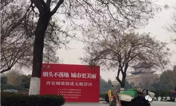 西安城墻景區(qū)創(chuàng)建無煙景區(qū)標(biāo)語 圖片來自大秦之聲