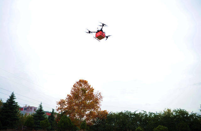 10日上午,一架無人機(jī)帶著快遞箱,從京東位于西安長安區(qū)樊川站的起降點升空,不到十分鐘,就飛進(jìn)了長安區(qū)杜曲街道師家村村委會的小院里。離地約30厘米時,無人機(jī)將貨物拋落,隨即拉高,原路返航,整套動作由電腦設(shè)定,無人機(jī)自主完成。目前,這種無人機(jī)配送已在陜西西安、江蘇宿遷等市實現(xiàn)常態(tài)運行,累計飛行時間超過17萬小時。