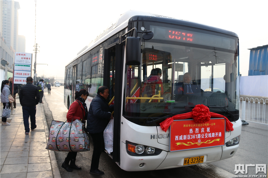 央廣網(wǎng)西安2月25日消息(記者舒隆煥)西安市公交總公司今天(25日)開通了361、362路兩條線路,分別由西安市后衛(wèi)寨、西安北客站到西咸大廈雙向?qū)﹂_,實現(xiàn)了西安市和西咸新區(qū)公共交通的零距離對接。央廣網(wǎng)記者 舒隆煥 攝 -