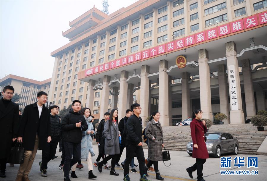 1月22日,參加寒假見習的大學生參觀陜西省人民政府辦公樓。 新華網(wǎng)消息 當日,來自17所高校的109名大學生走進陜西省政府大院接受培訓,他們將被分配至40個廳局部門,開始為期39天的“準公務員”見習生活。新華社發(fā)(張博文 攝) -