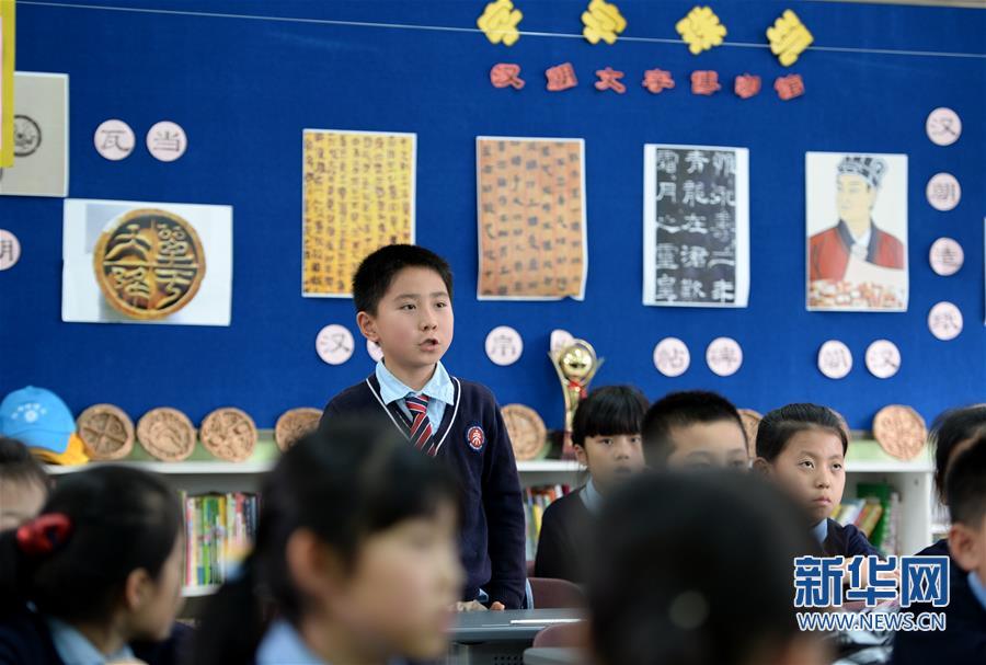 3月15日,西安市曲江第二小學學生在博物館課上回答問題。新華社記者 李一博 攝 -