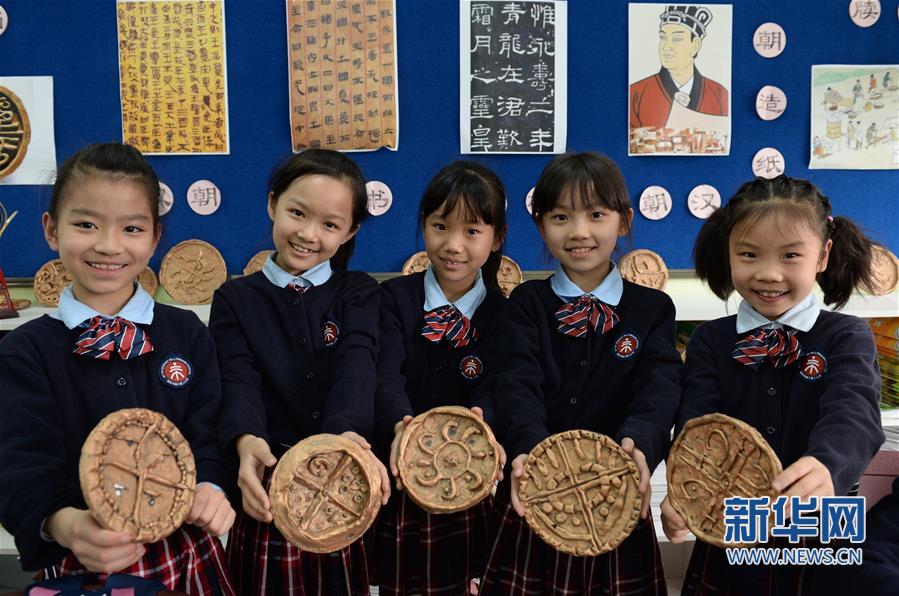 3月15日,西安市曲江第二小學學生展示自己的博物館課作業(yè)——瓦當模型。新華社記者 李一博 攝 -