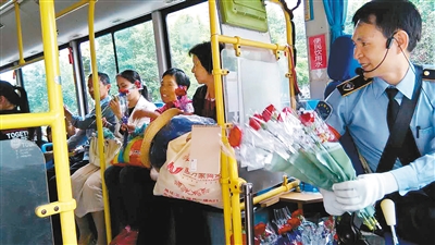 “這是今年我收到最特別的母親節(jié)禮物!睖(zhǔn)備從小寨下車的乘客范女士帶著孩子,下車前專門走到駕駛室,向吳本國道謝,“謝謝你師傅,您辛苦了!”記者了解到,昨日吳本國自費(fèi)購買50余支康乃馨送給乘客,祝福乘客母親節(jié)快樂!拔揖褪窍肓λ芗敖o大家營造一個溫馨的車廂環(huán)境。乘客收到鮮花后都很開心,感覺車廂里頓時充滿了濃濃的溫情”。