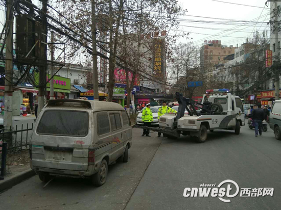 交警將部分聯(lián)系不上車主的僵尸車進(jìn)行拖離。