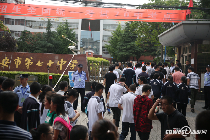西安70中考點(diǎn)外,考生陸續(xù)入場。