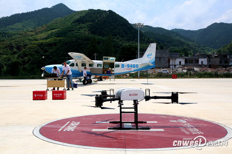 西部網(wǎng)訊(記者劉望)6月20日,隨著塞斯納208型飛機攜帶生鮮貨品從陜西蒲城降落到陜西丹鳳機場,國內(nèi)首個通航短途貨運在陜西進入驗證的關(guān)鍵環(huán)節(jié),隨后,貨品快速轉(zhuǎn)至京東無人機貨箱后并飛往周邊末端站點,完成“最后一公里”配送工作。
