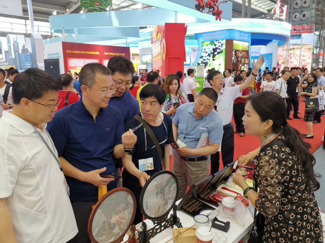 皮影展臺(tái)吸引著眾多觀眾參觀